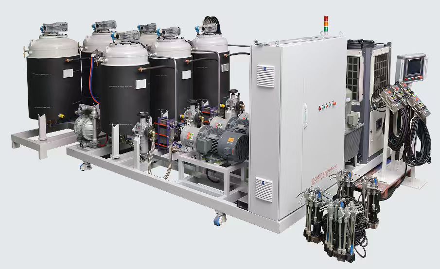 多機(jī)頭高壓機(jī)工作站式生產(chǎn)線由多機(jī)頭高壓發(fā)泡機(jī)、機(jī)械手、模架、自動(dòng)控制系統(tǒng)等各裝置組成 適用于大型汽車(chē)內(nèi)外飾、大型汽車(chē)裝配件、汽車(chē)前后圍、汽車(chē)地毯、大件家具、床墊等配合大型固定式模架閉模澆注生產(chǎn) 高效、低風(fēng)險(xiǎn)操作生產(chǎn),生產(chǎn)工位布局靈活